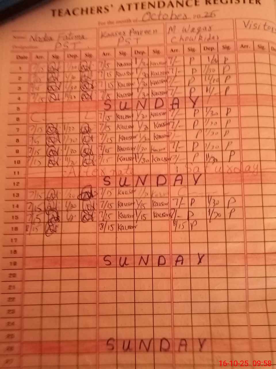| CNIC | Full Name | Designation | R/C | Absence During Last Calender Month |