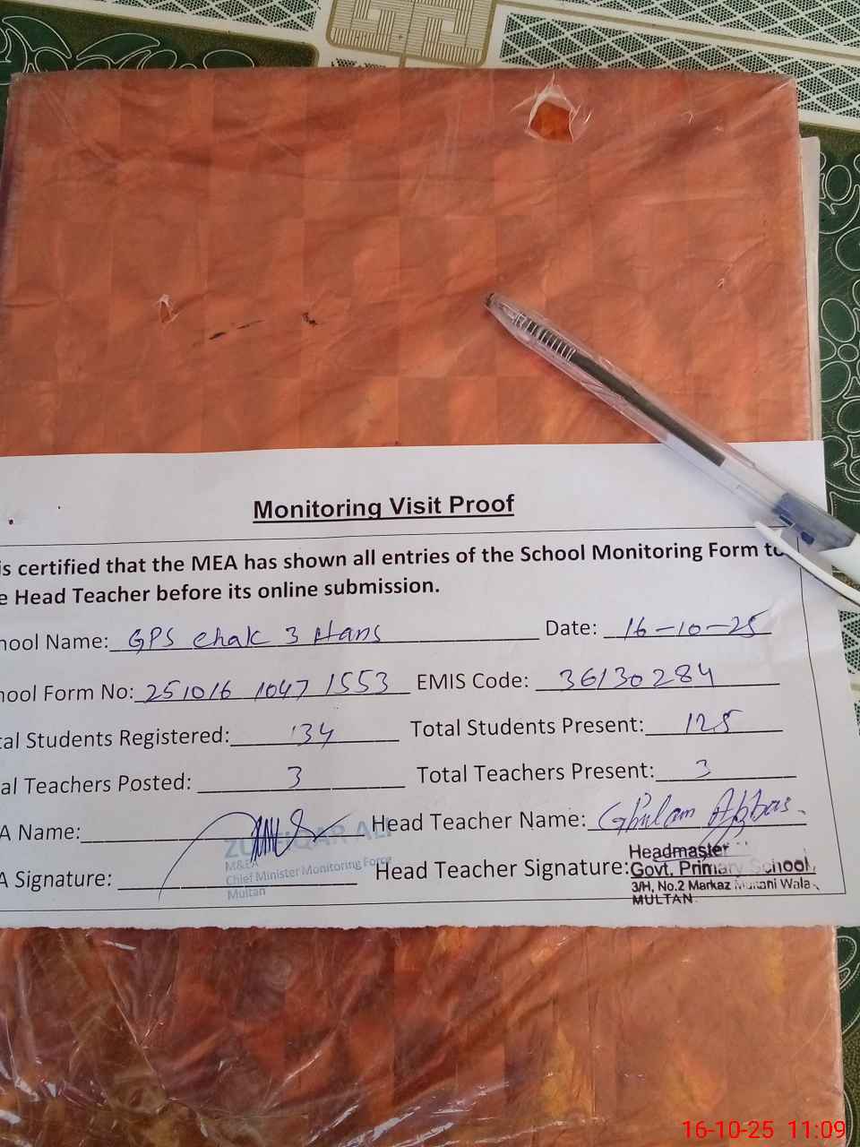 | EMIS Code: 36130284 | Name of School: GPS CHAK NO 3 HAINS NO:2 KOT MELA RAM MULTAN | |||