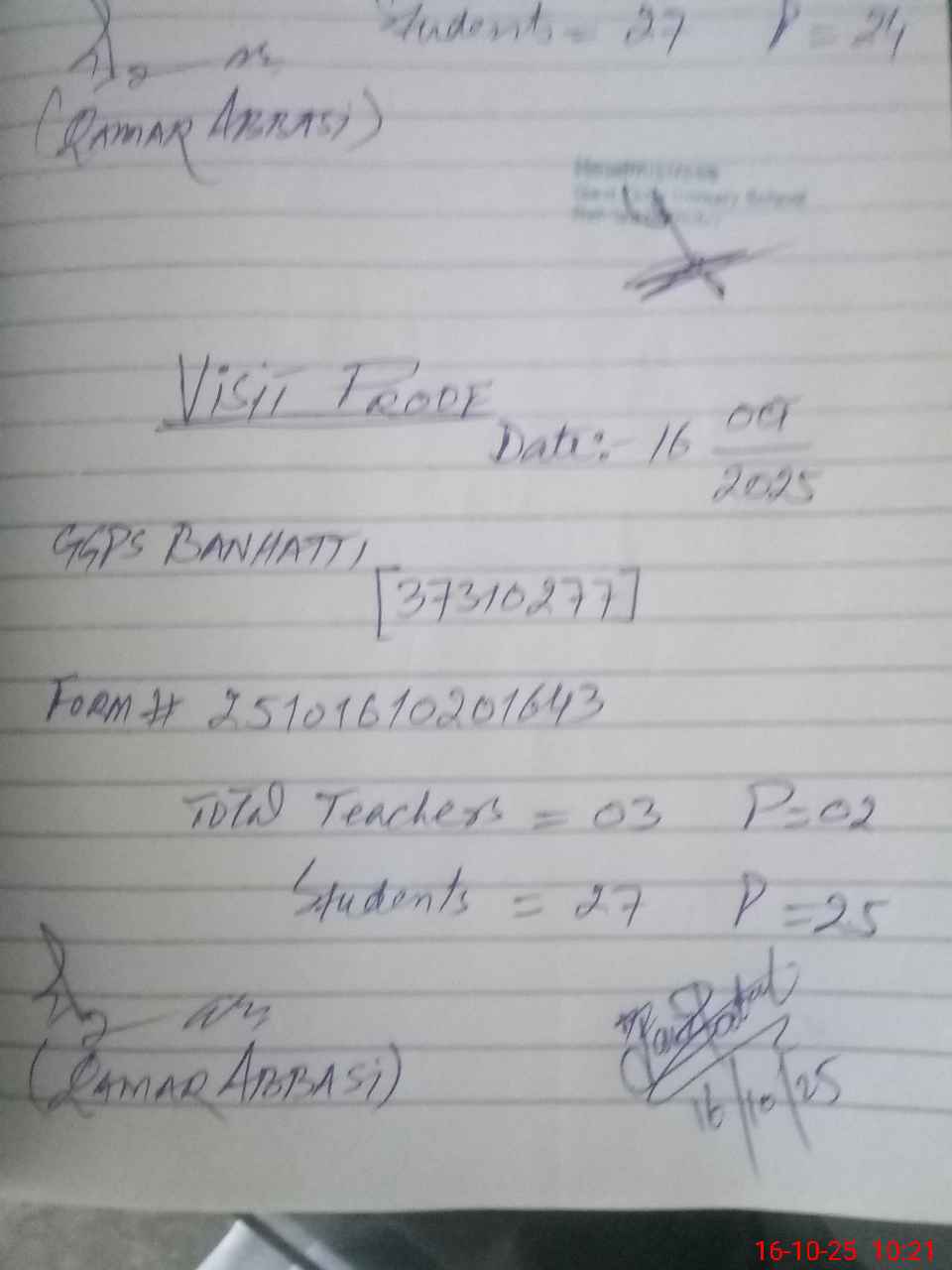 | Attendance Register | Head Teacher | MEA with School | Visit Proof |