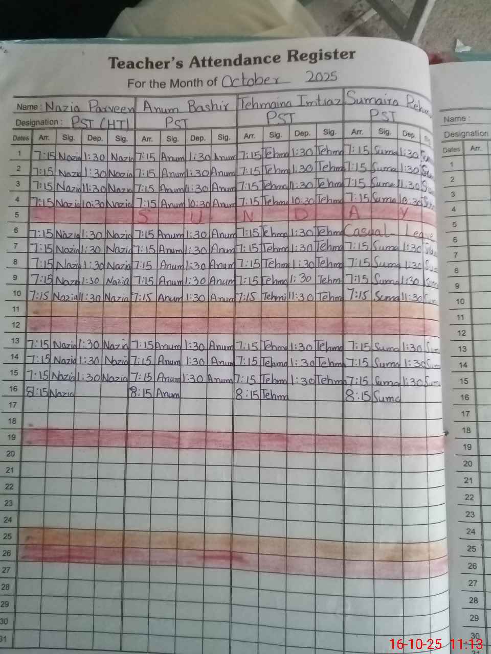 | CNIC | Full Name | Designation | R/C | Absence During Last Calender Month |