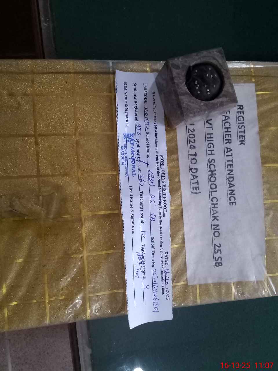 | Attendance Register | Head Teacher | MEA with School | Visit Proof |