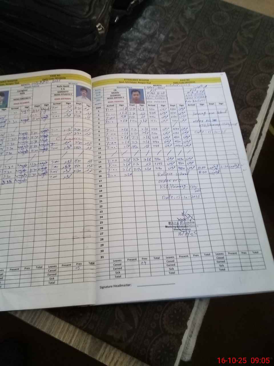 | Name: AK**** HU**** Designation: (School Headmaster's/Headmistress's) SST Phone/Cell Number: 03**** |