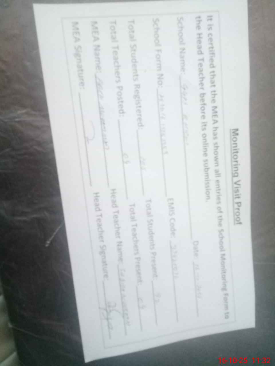 | Certified that this School was Inspected by the Undersigned MEA/DMO Today and the Information Stated Above is as Per Record. | |||||