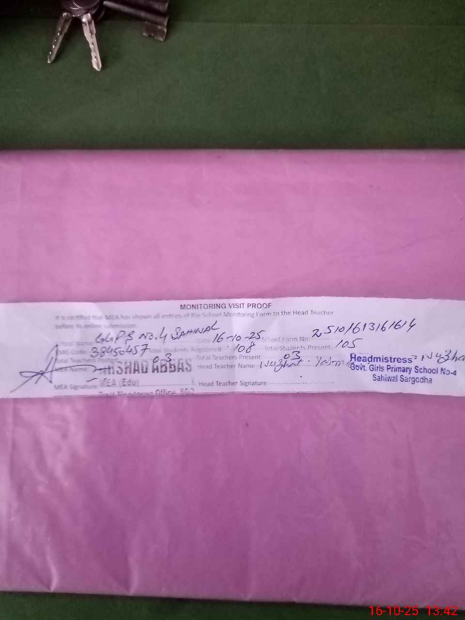 | Attendance Register | Head Teacher | MEA with School | Visit Proof |