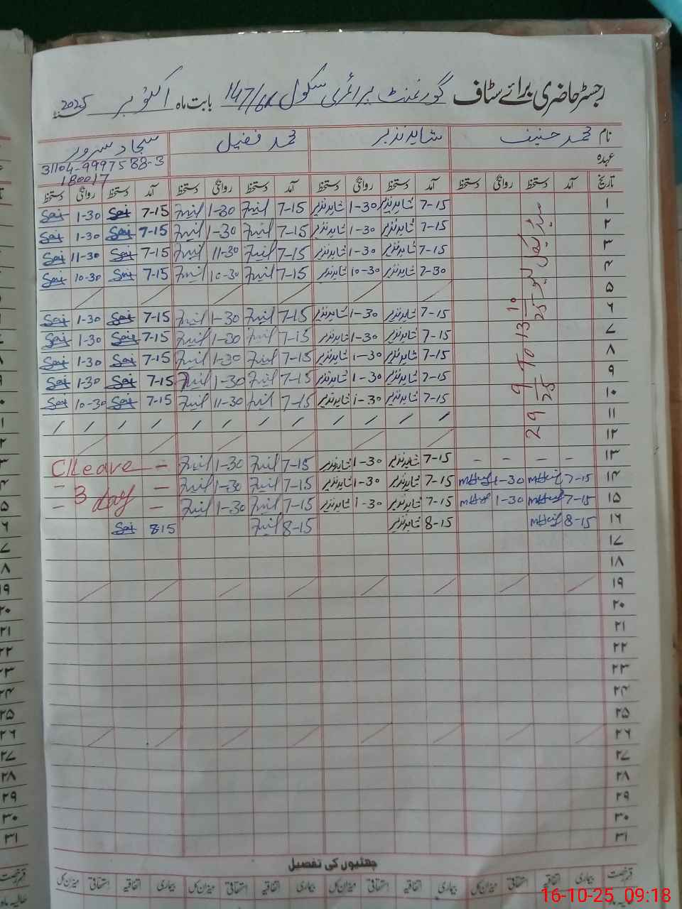 | Name: MHa**** Designation: (School Headmaster's/Headmistress's) PST Phone/Cell Number: 03**** |