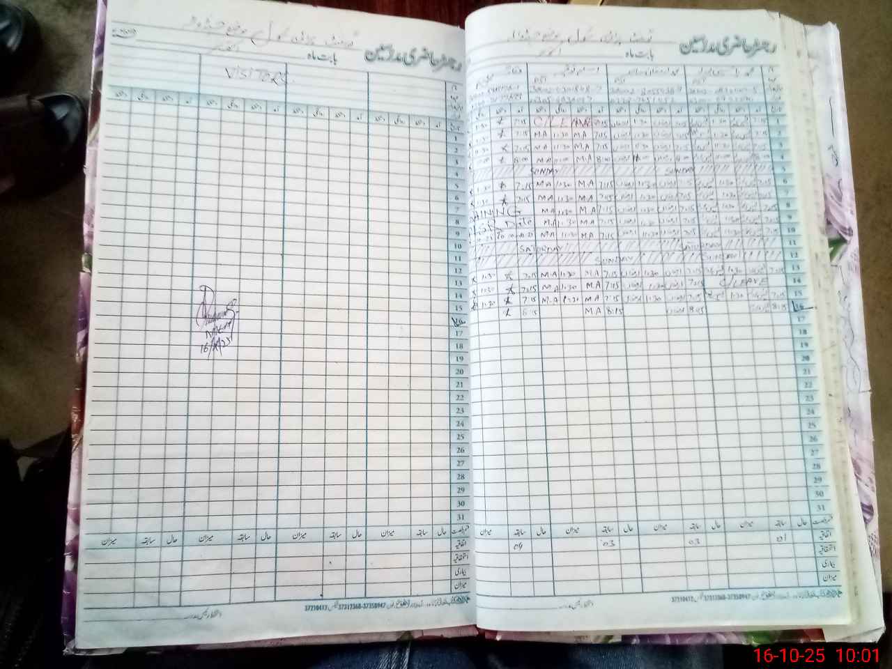 | CNIC | Full Name | Designation | R/C | Absence During Last Calender Month |