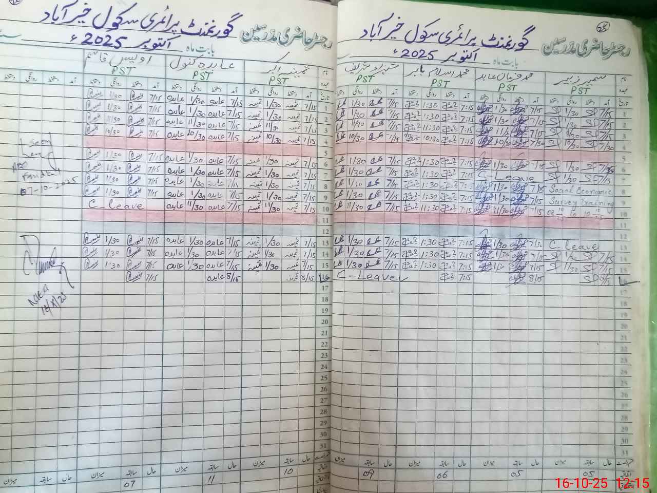 | CNIC | Full Name | Designation | R/C | Absence During Last Calender Month |
