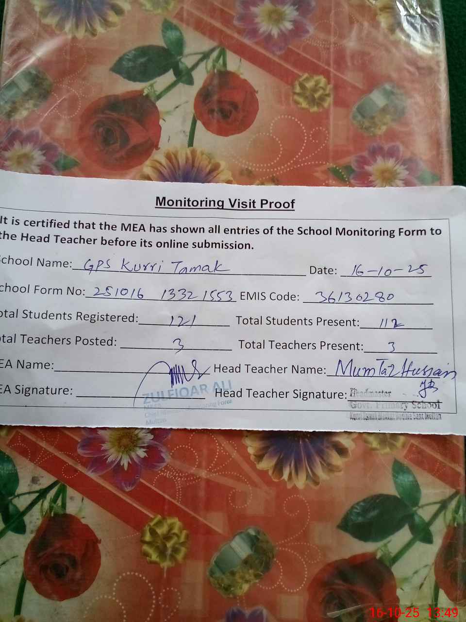 | EMIS Code: 36130280 | Name of School: GPS KURRI TAMAK CHAK SILAN WALA P/O KOT MELA RAM | |||