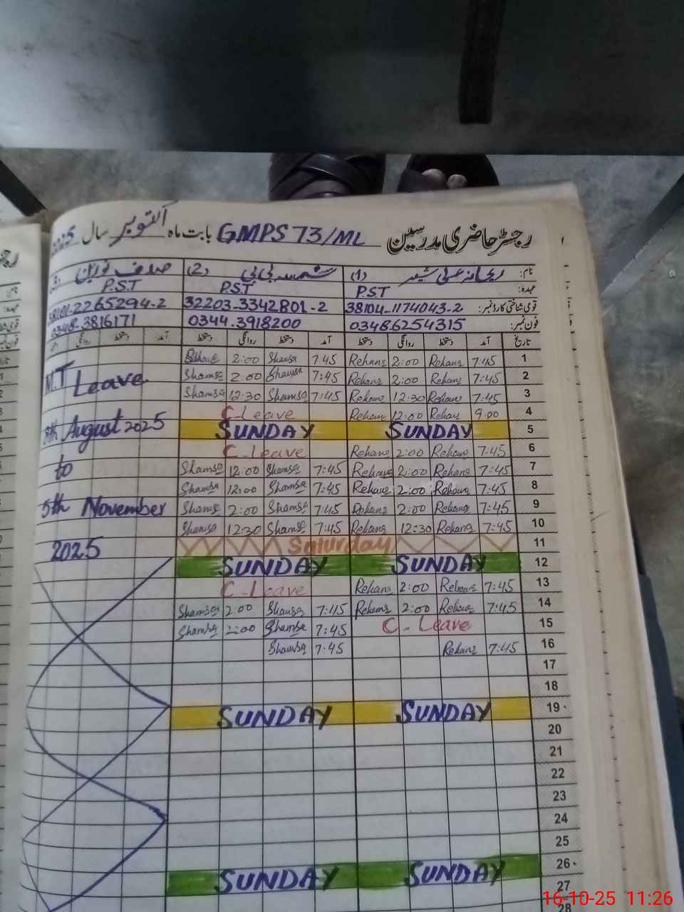 | Leave | Duty | Absent | Maternity | Medical | Ex- Pak |