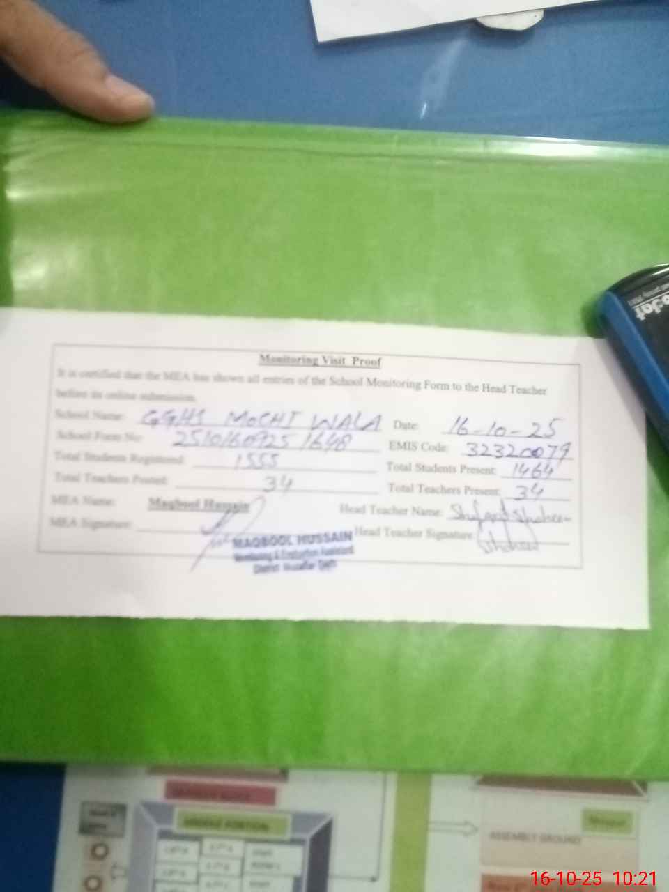 | EMIS Code: 32320079 | Name of School: GGHS MOCHI WALA | |||