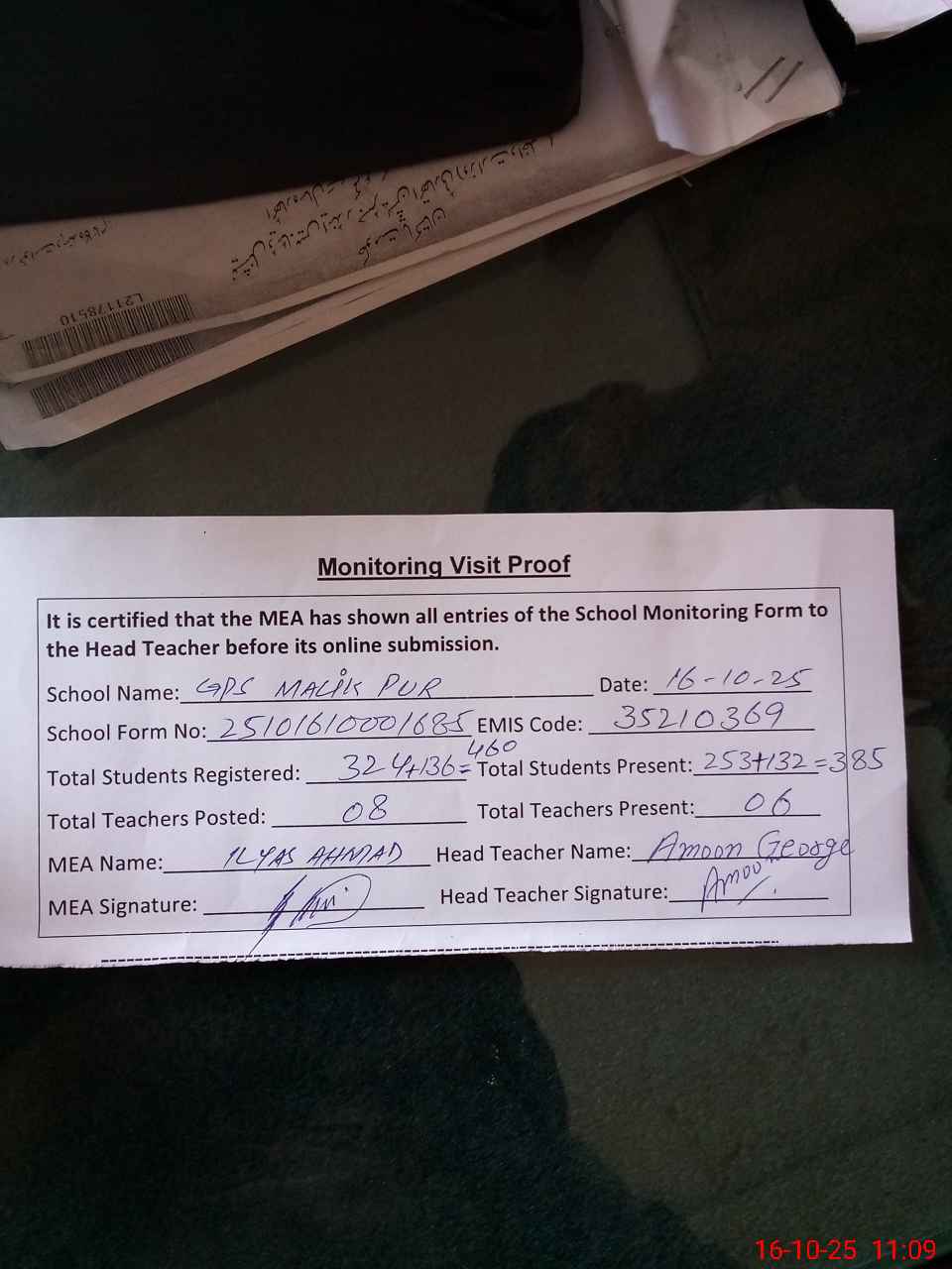 | EMIS Code: 35210369 | Name of School: GPS MALIK PUR | |||