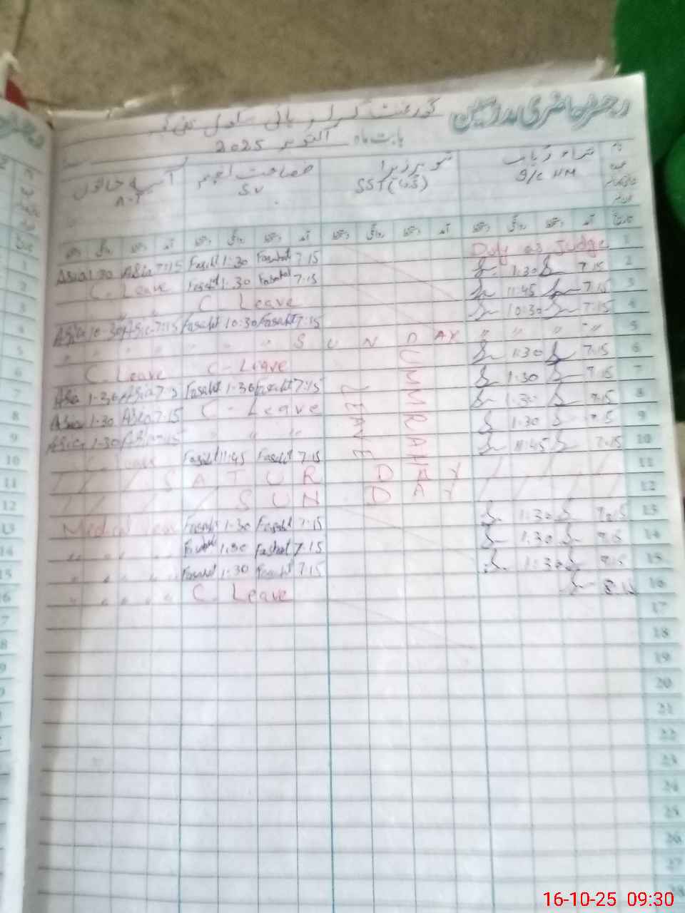 | Leave | Duty | Absent | Maternity | Medical | Ex- Pak |