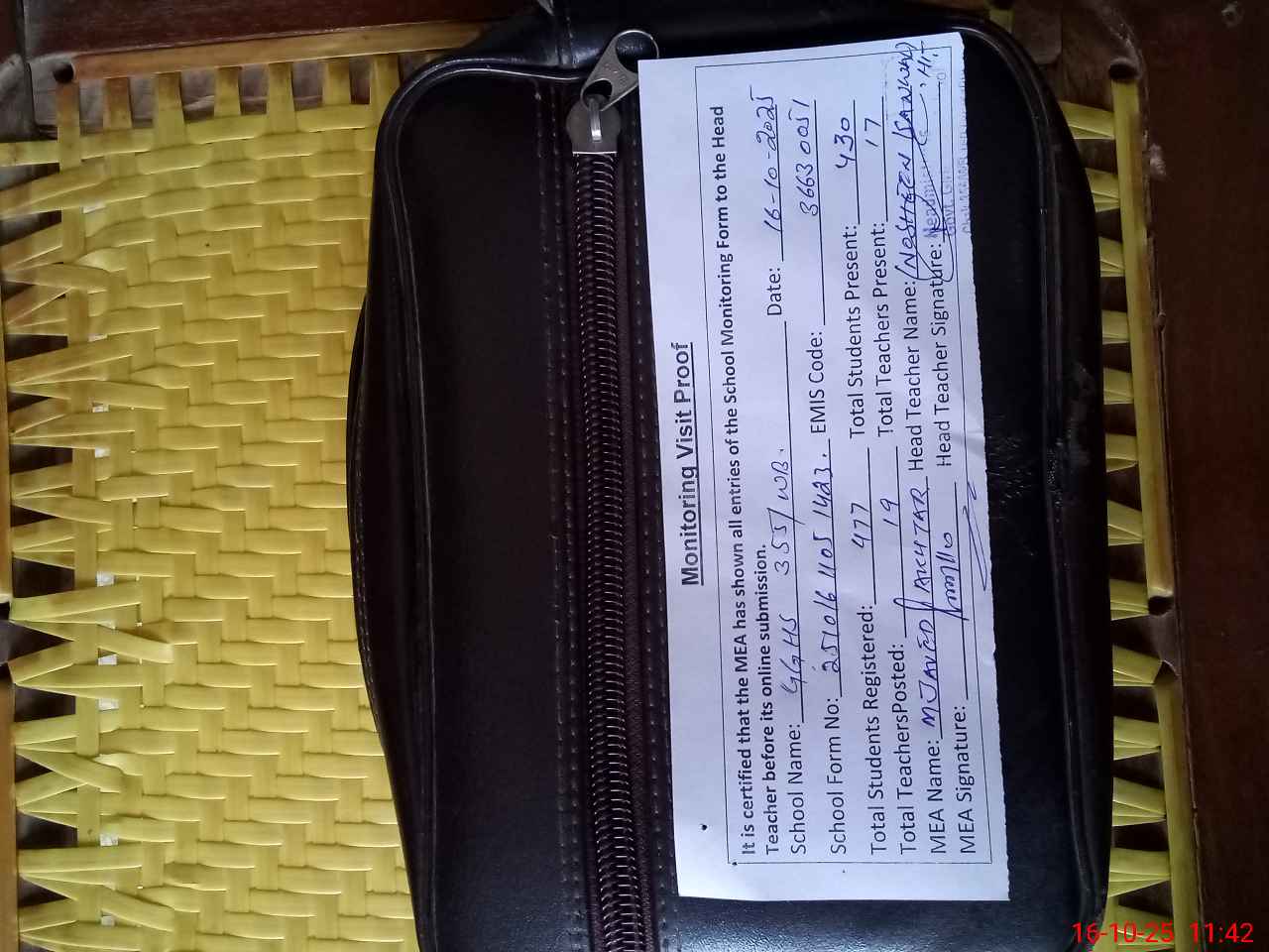 | Attendance Register | Head Teacher | MEA with School | Visit Proof |