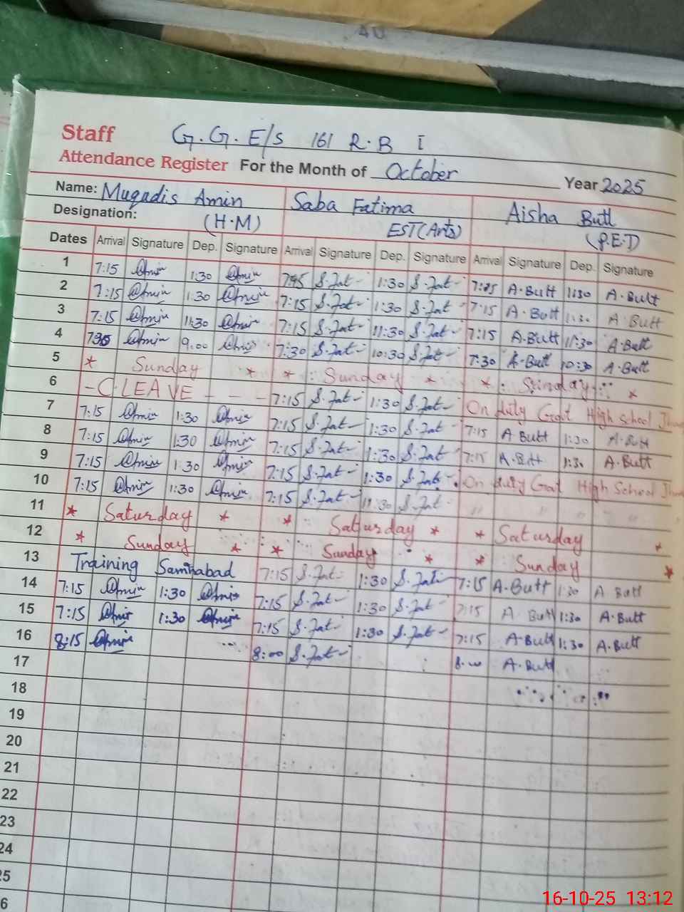 | Monitoring Date: 16-10-2025 | Start Time: 16-10-2025 12:45 PM | End Time: 16-10-2025 01:57 PM | Name of MEA: Ma**** Al**** | |