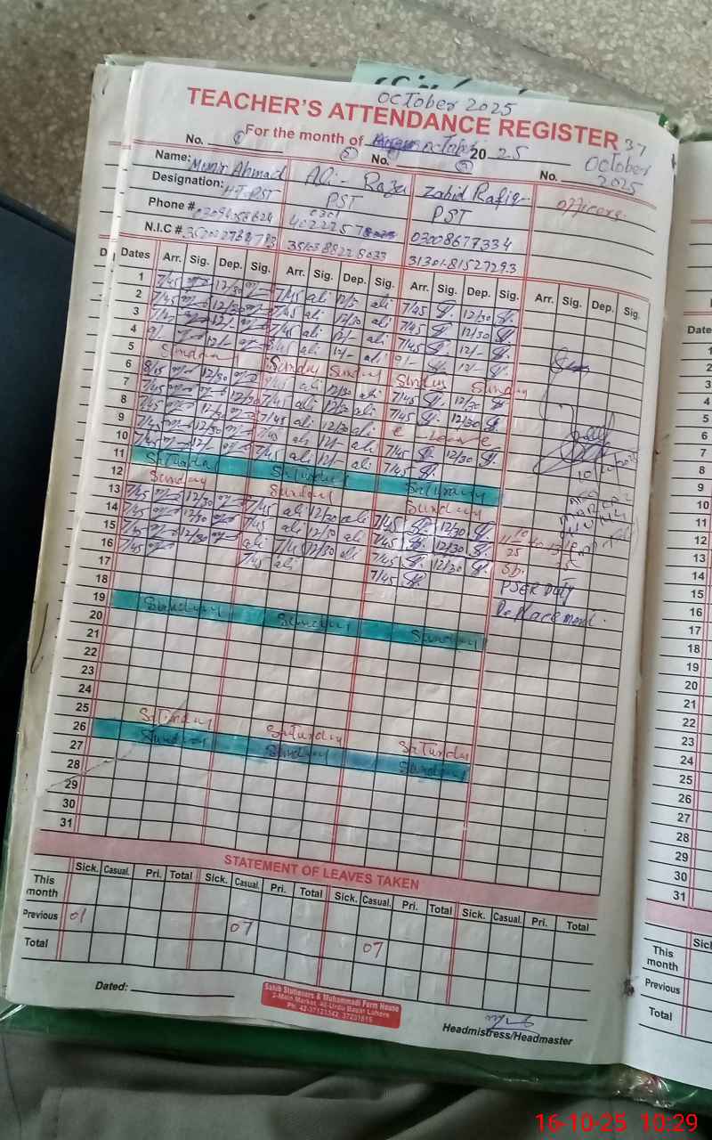 | Name: MU**** AH**** Designation: (School Headmaster's/Headmistress's) Head Master Phone/Cell Number: 03**** |