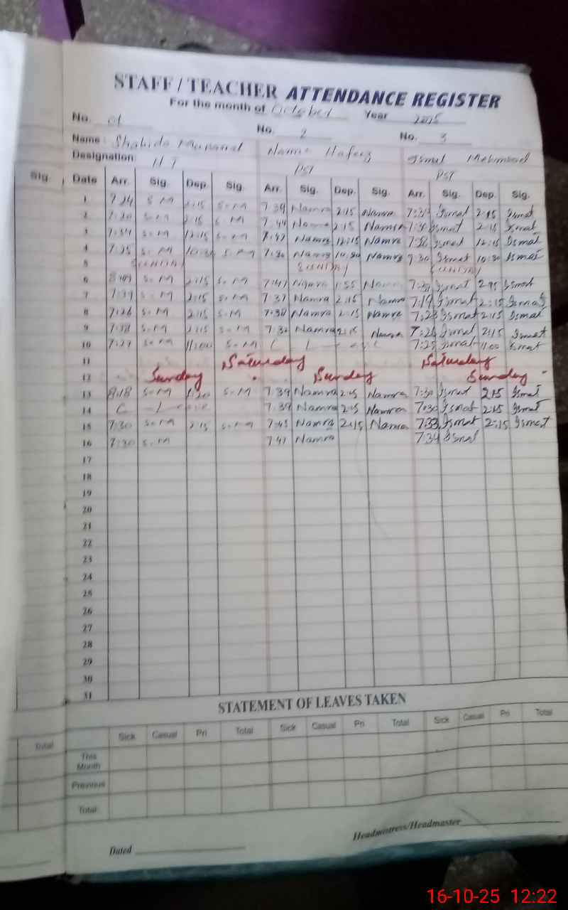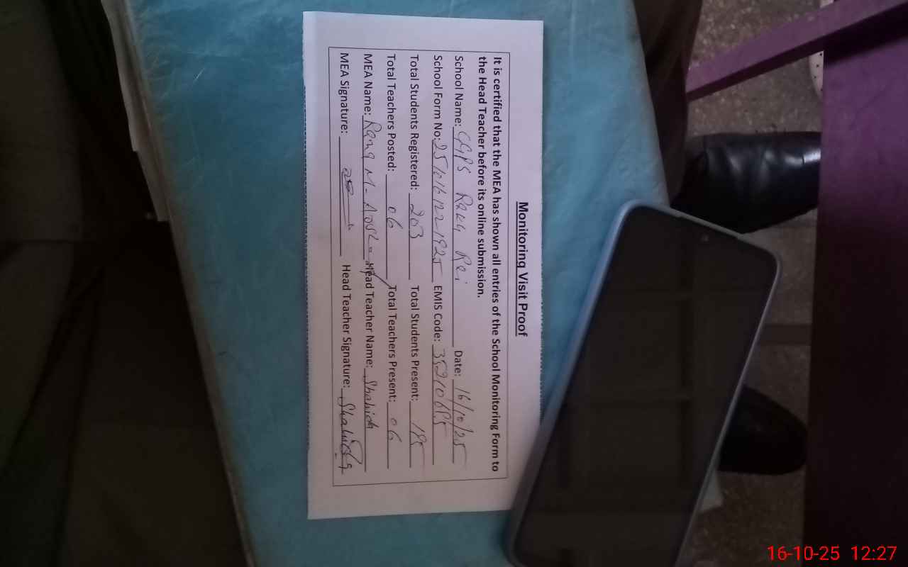 | Attendance Register | Head Teacher | MEA with School | Visit Proof |