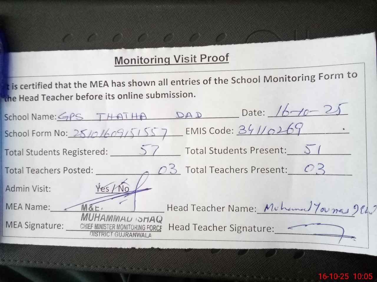 | EMIS Code: 34110269 | Name of School: GPS THATHA DAD | |||