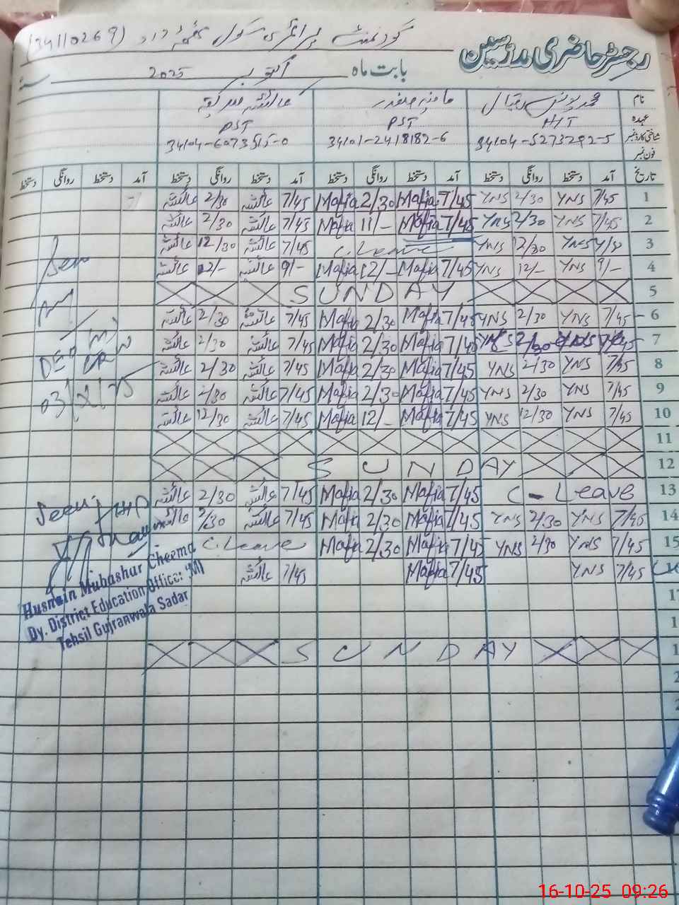 | Name: MYO**** IQ**** Designation: (School Headmaster's/Headmistress's) PST Phone/Cell Number: 03**** |