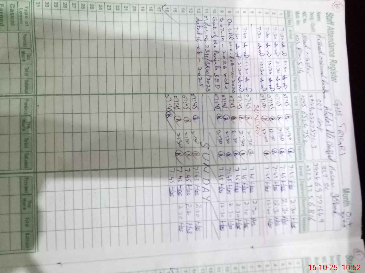 | 34**** | Mu**** Ta**** Me**** | Regular | 0 | 0 | 0 | 0 | 0 | 0 | 0 | 0 | 0 | Absent (Un-Authorized) | |