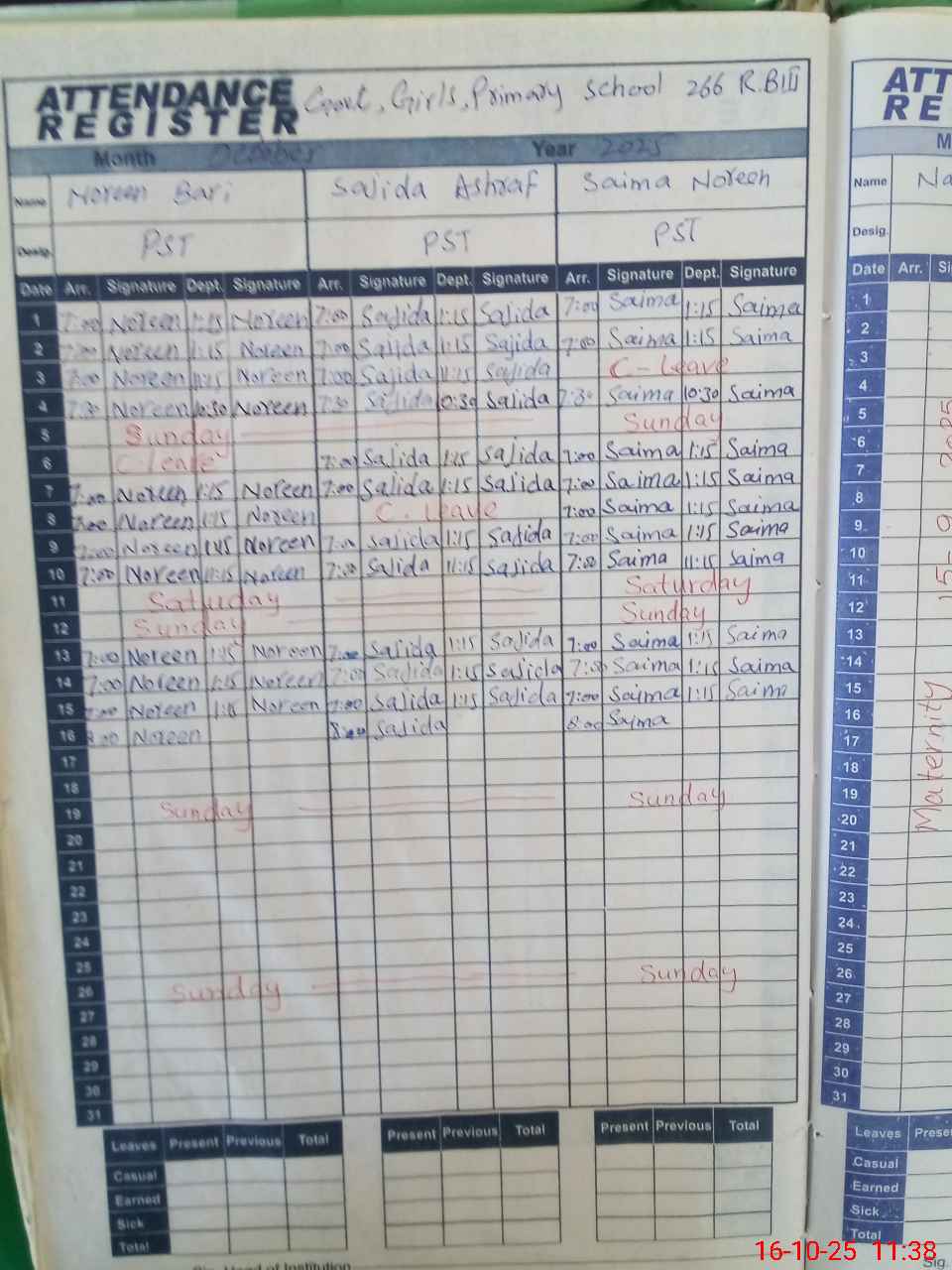 | 35**** | Na**** Ko**** | PST | Regular | 0 | 0 | 0 | 0 | 0 | 0 | 0 | 0 | 0 | Maternity |