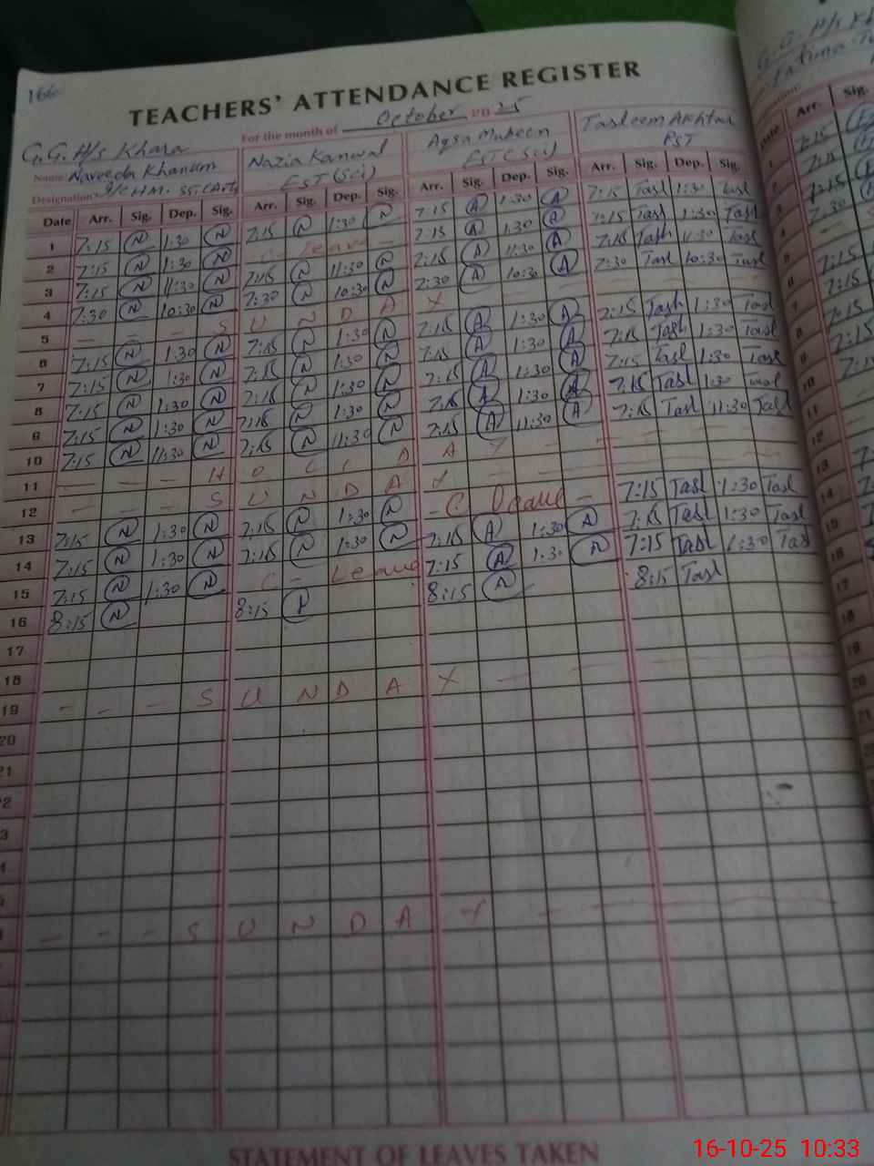 | Leave | Duty | Absent | Maternity | Medical | Ex- Pak |