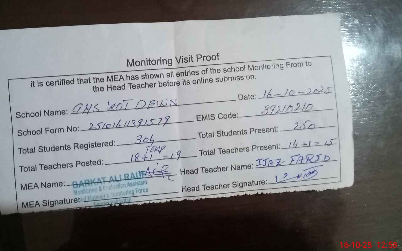 | EMIS Code: 39210210 | Name of School: GHS KOT DEWAN PO PAKPATTAN | |||