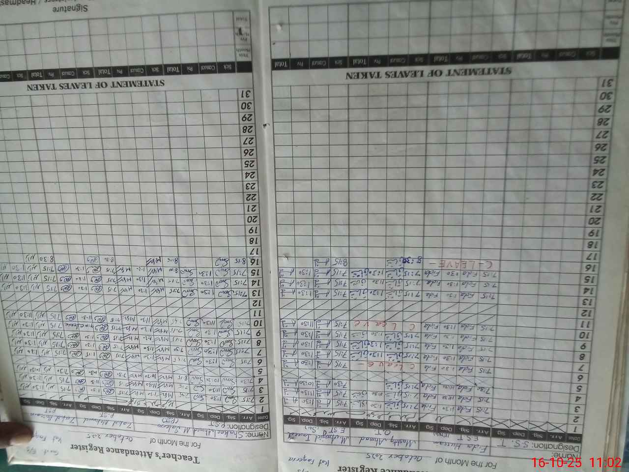 | Leave | Duty | Absent | Maternity | Medical | Ex- Pak |