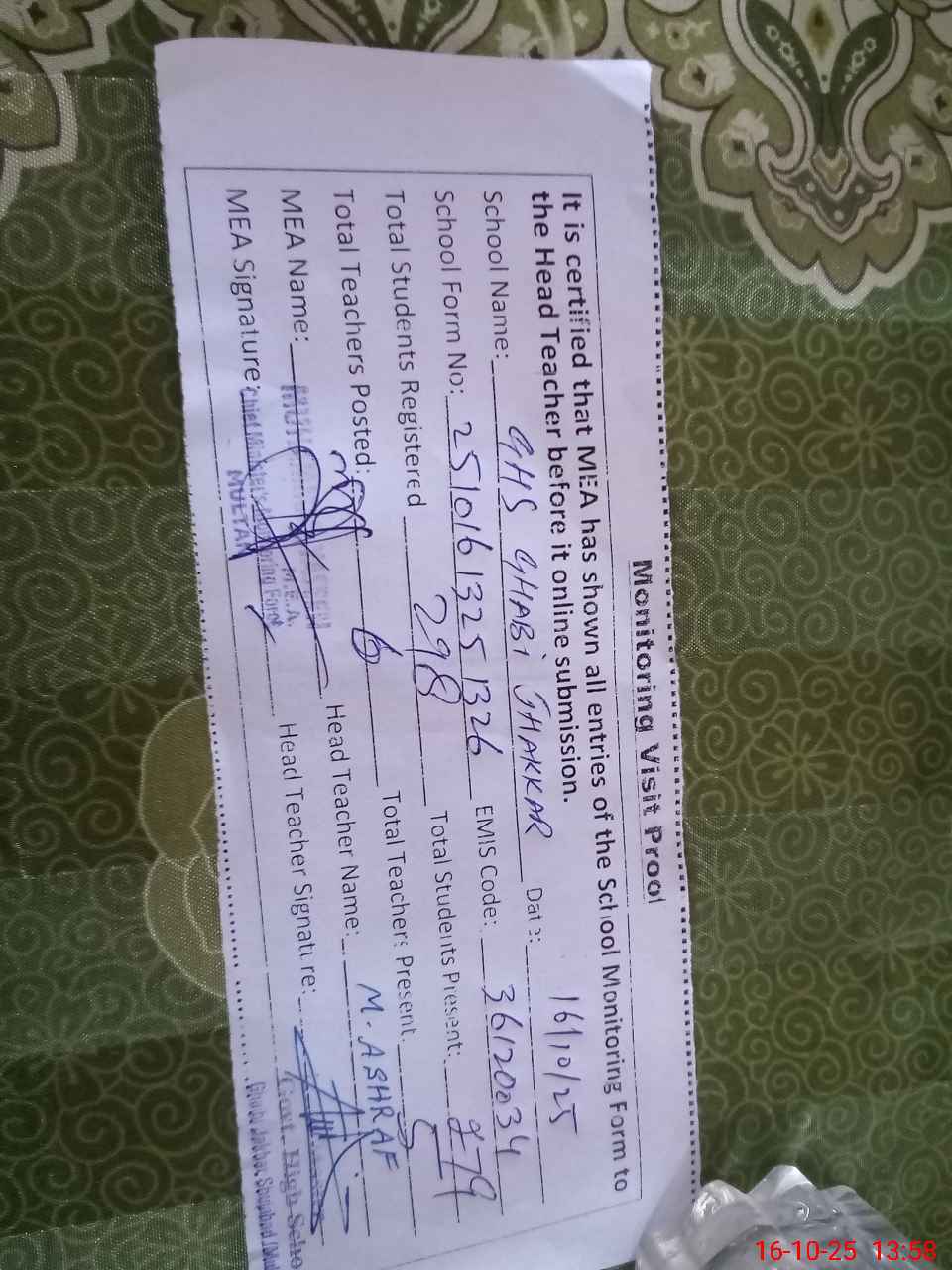 | EMIS Code: 36120034 | Name of School: GHS GHABI JHAKKAR SHUJABAD | |||