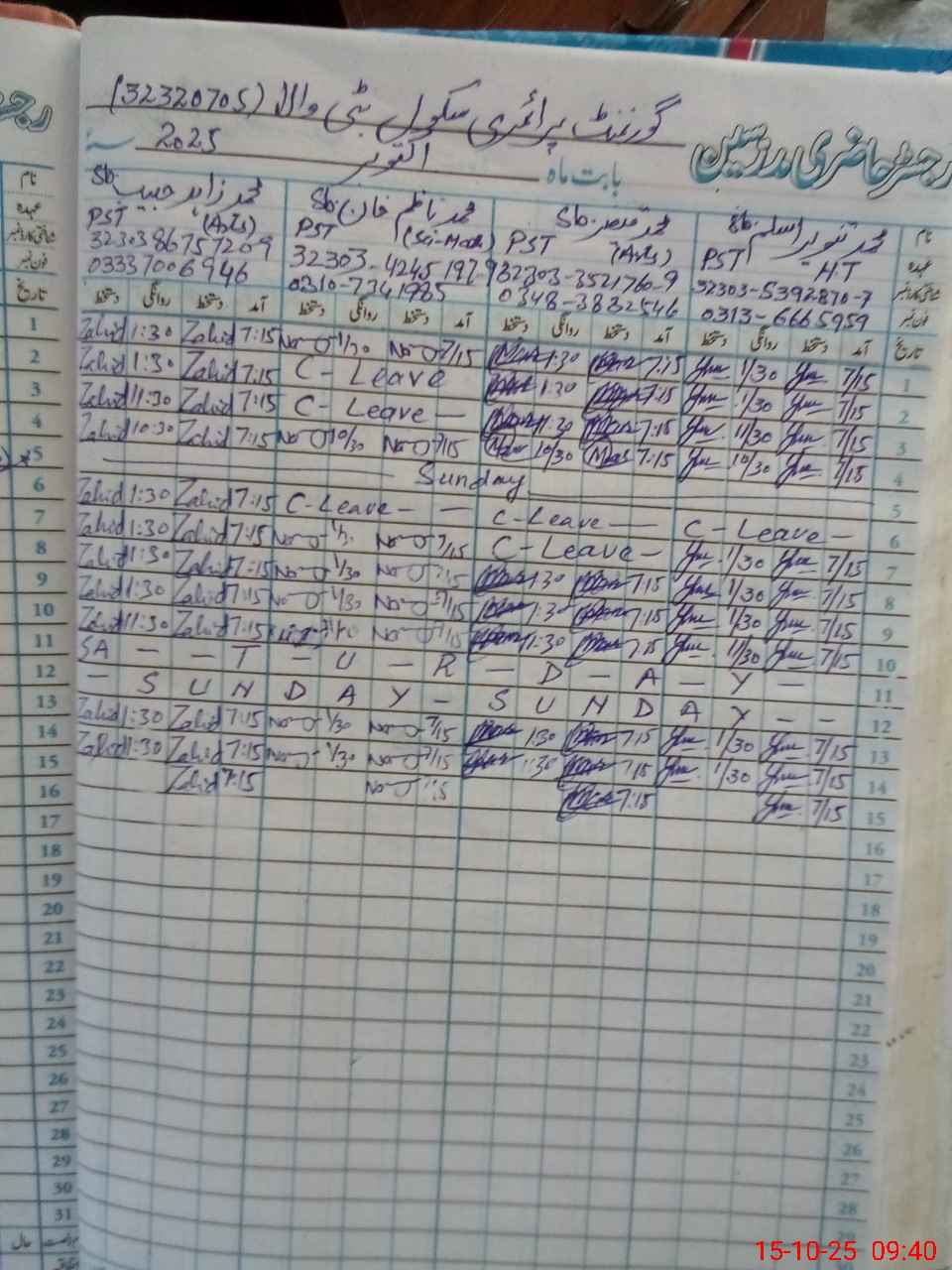 | CNIC | Full Name | Designation | R/C | Absence During Last Calender Month |