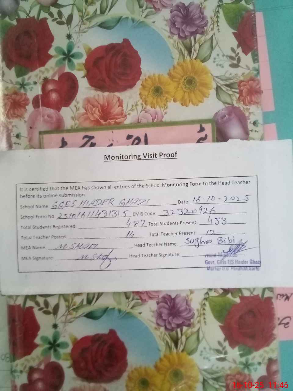 | EMIS Code: 32320926 | Name of School: GGES HAIDER GHAZI | |||
