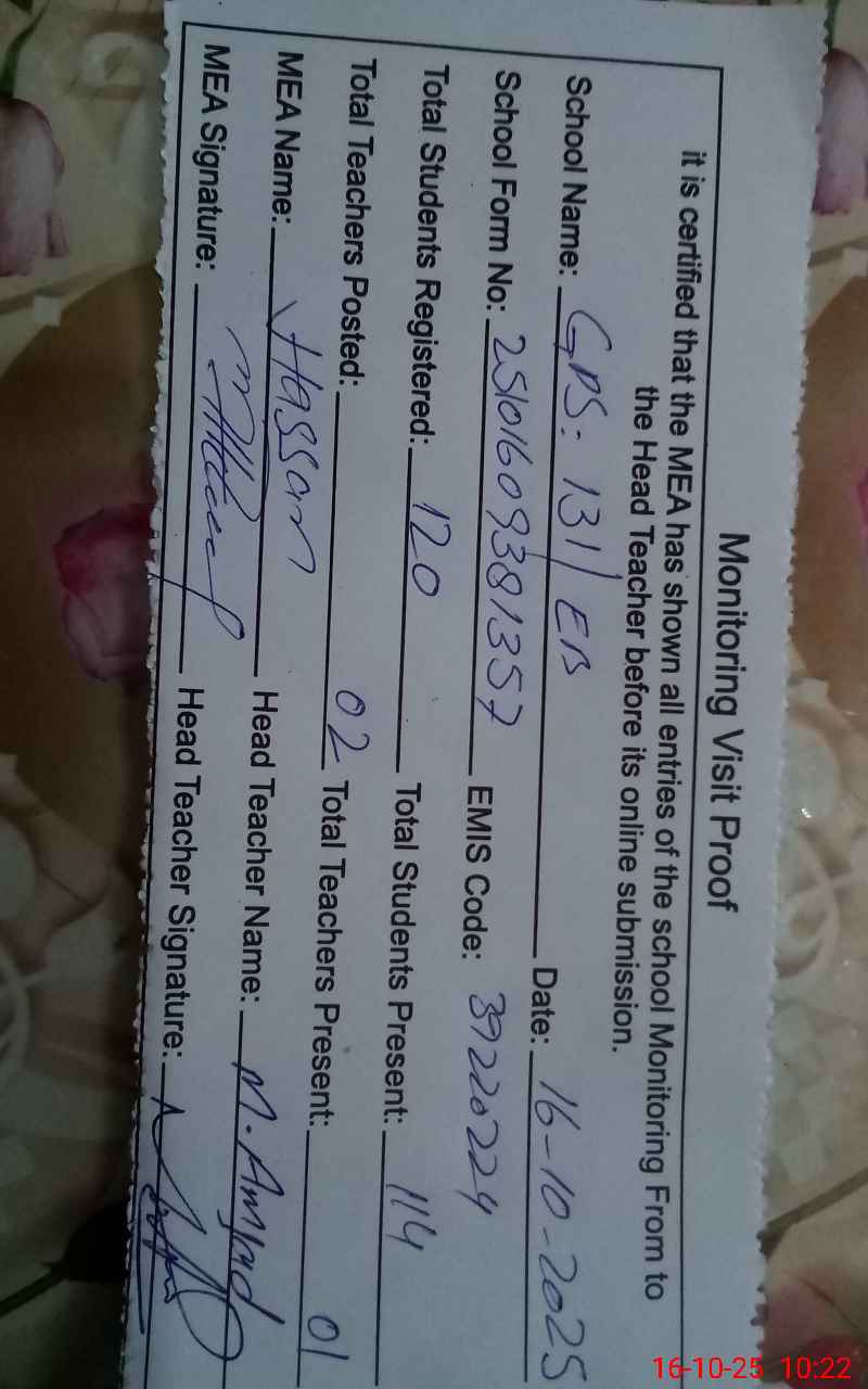 | EMIS Code: 39220224 | Name of School: GPS 131 EB P.O SAME | |||