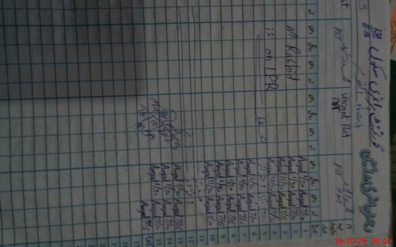 | CNIC | Full Name | Designation | R/C | Absence During Last Calender Month |