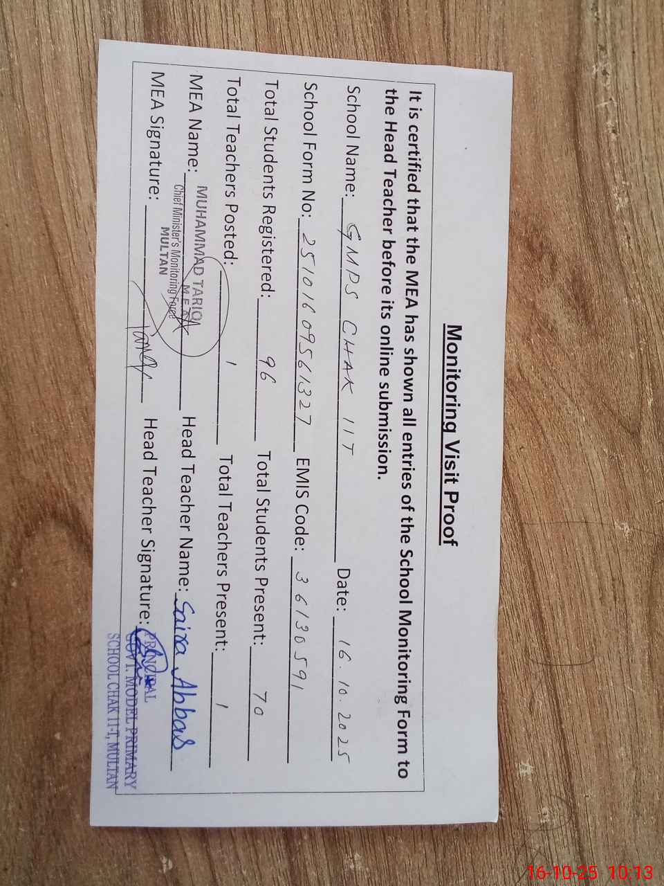 | EMIS Code: 36130591 | Name of School: GMPS CHAK 11-T | |||