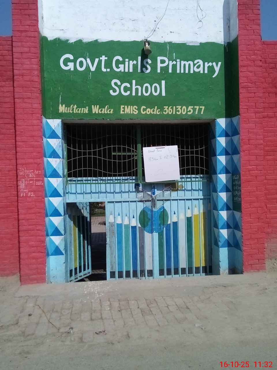 | District: MULTAN | Tehsil: MULTAN SADAR | Markaz: MULTANI WALA - FEMALE | Level: Primary | |