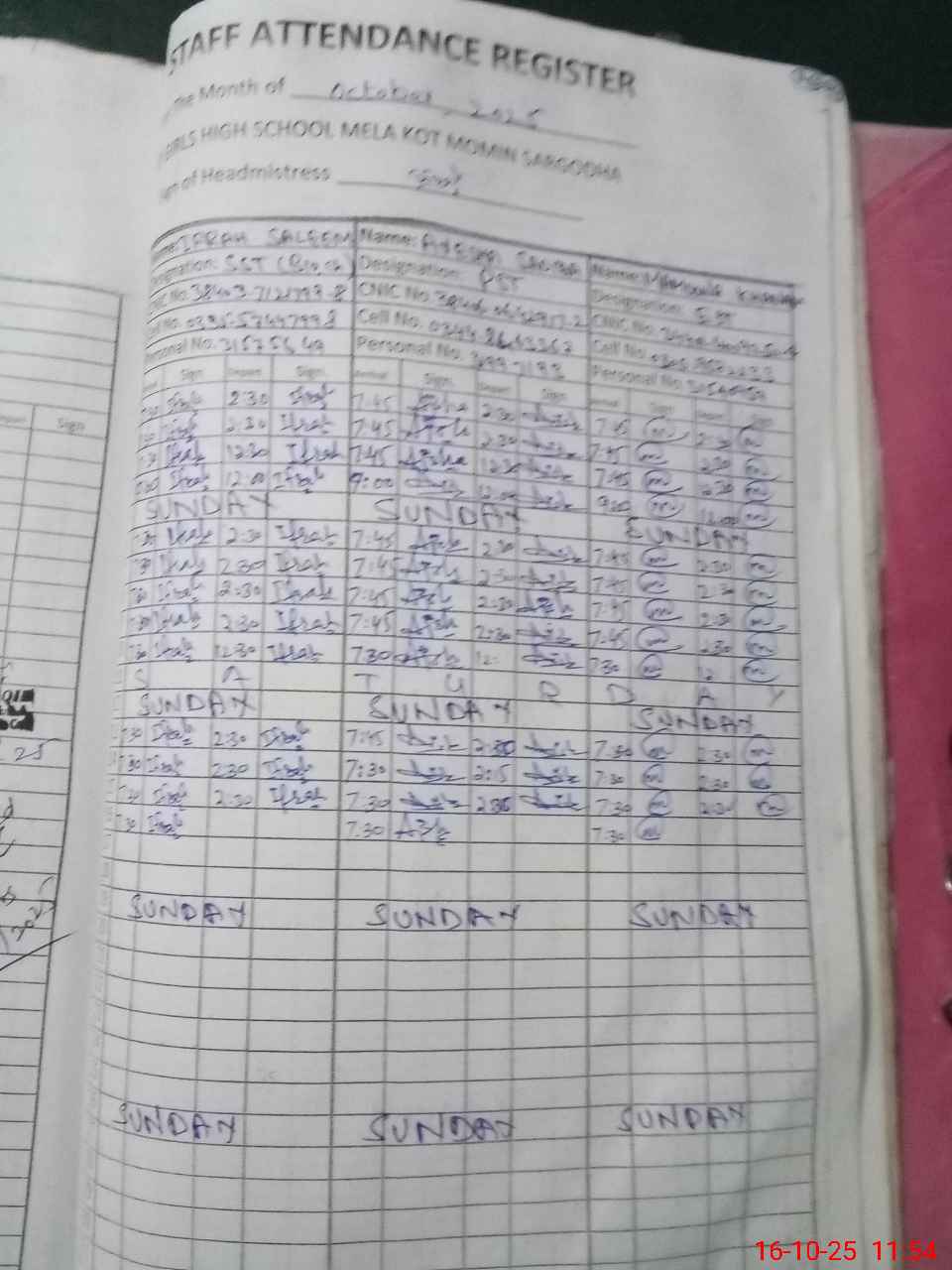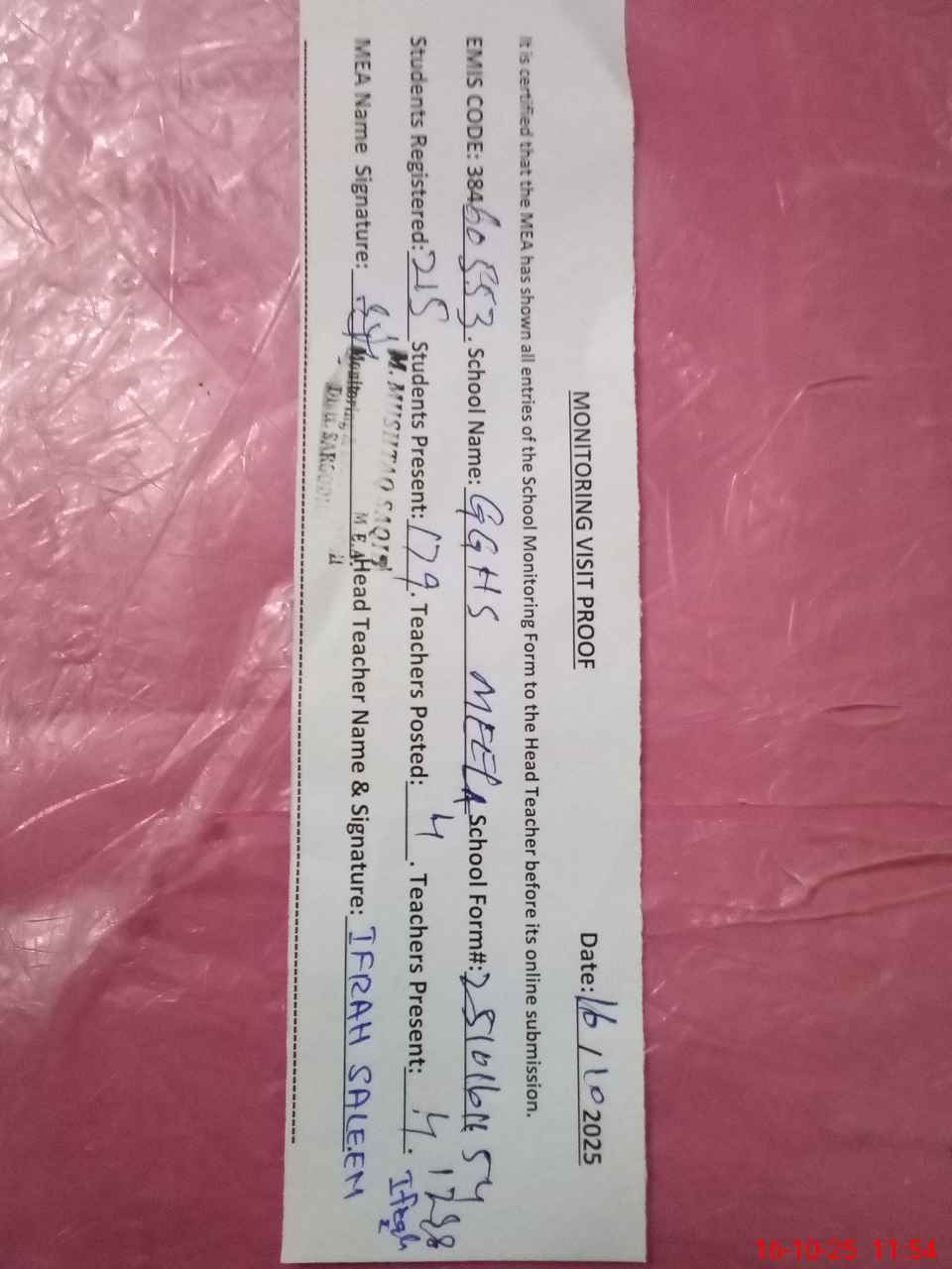 | Name: If**** Sa**** Designation: (School Headmaster's/Headmistress's) SST Phone/Cell Number: 03**** |