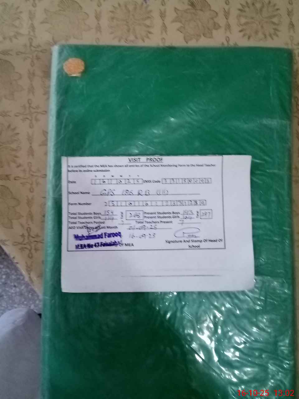 | Name: Fa**** UrRa**** Designation: (School Headmaster's/Headmistress's) PTC/JV Phone/Cell Number: 03**** |