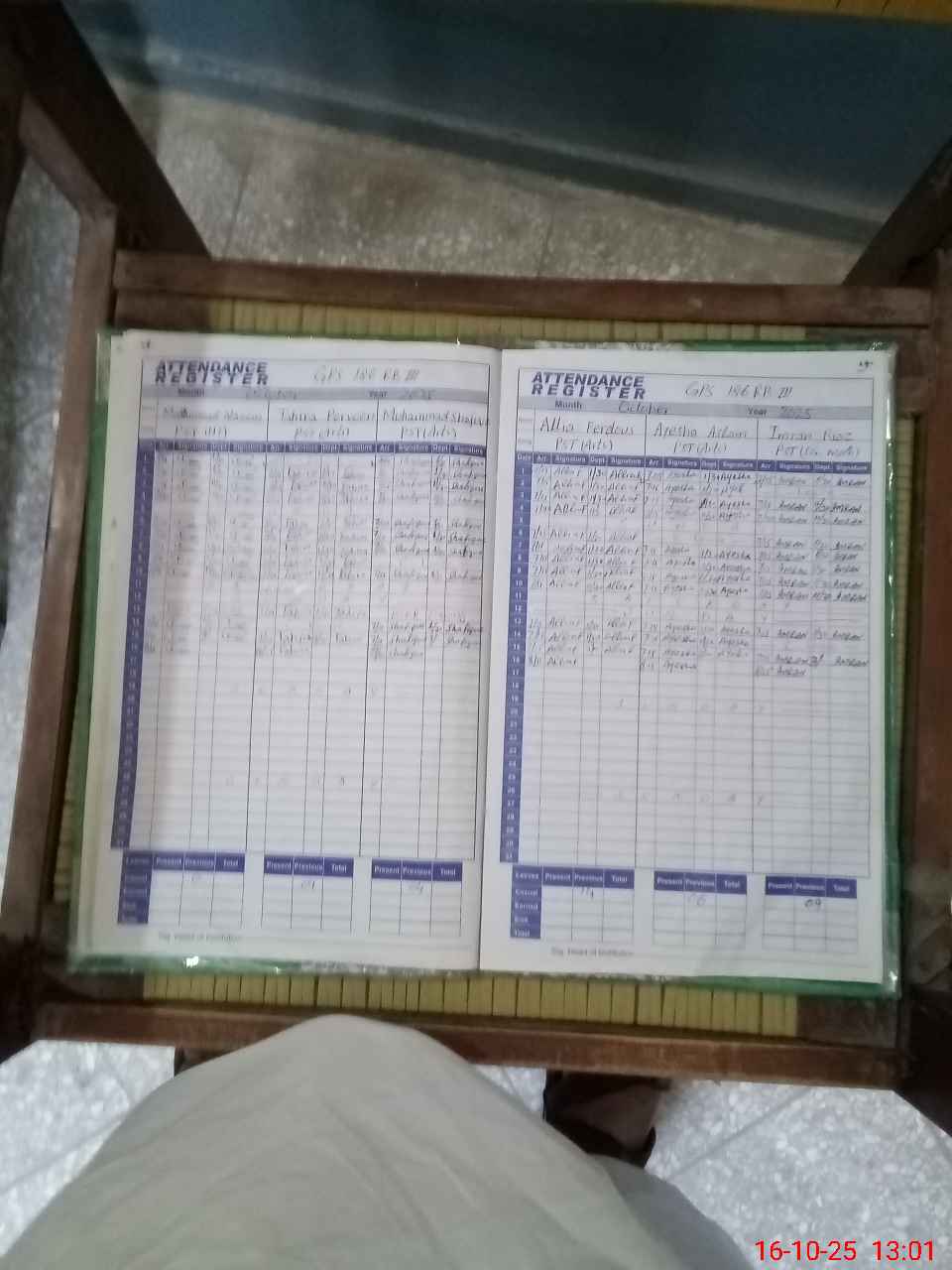 | CNIC | Full Name | Designation | R/C | Absence during last cal. month |