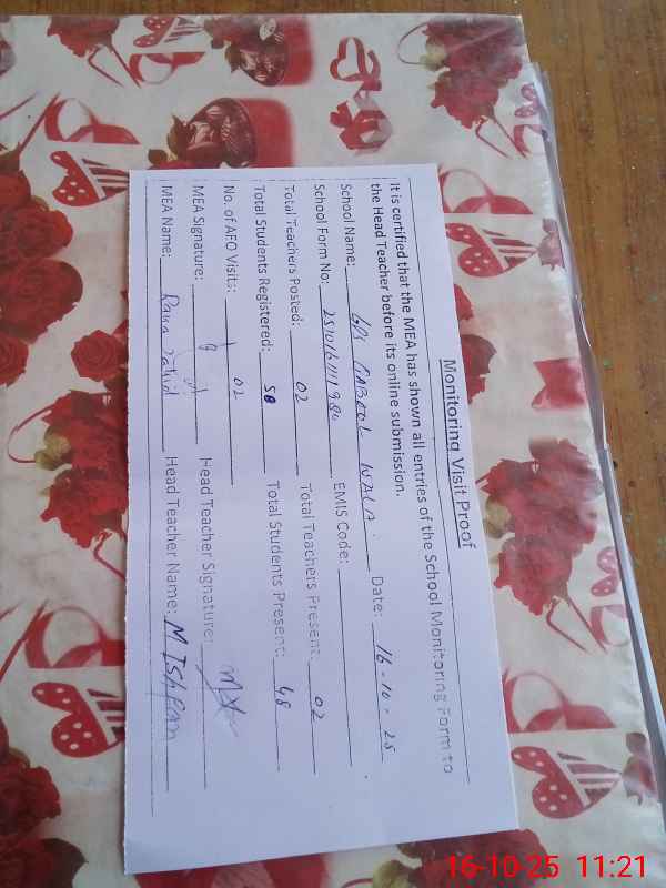 | EMIS Code: 31310146 | Name of School: GPS QABOOL WALA | |||