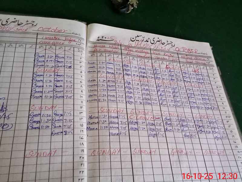 | CNIC | Full Name | Designation | R/C | Absence During Last Calender Month |
