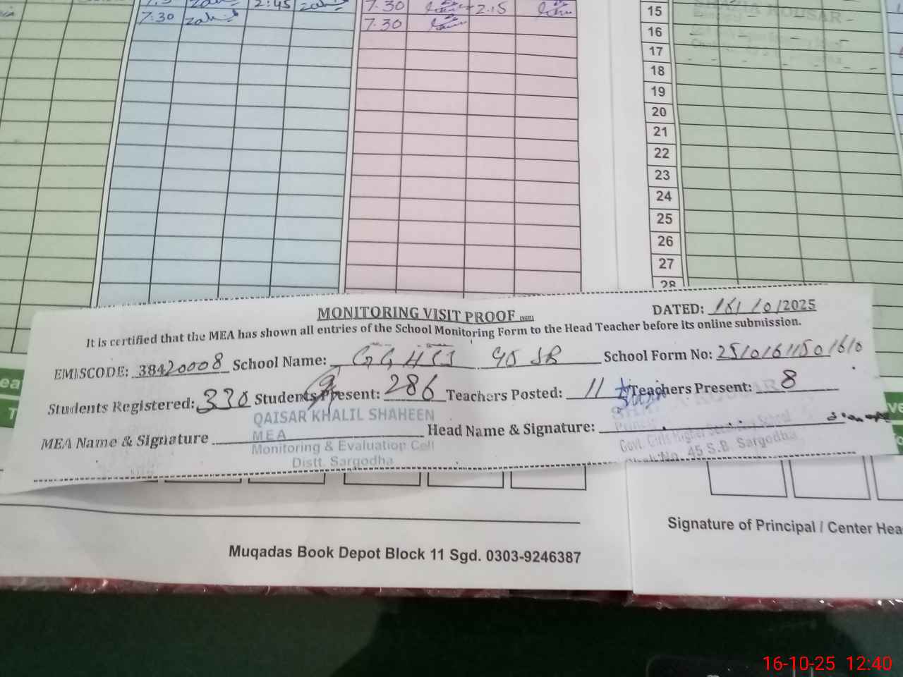 | Certified that this School was Inspected by the Undersigned MEA/DMO Today and the Information Stated Above is as Per Record. | |||||