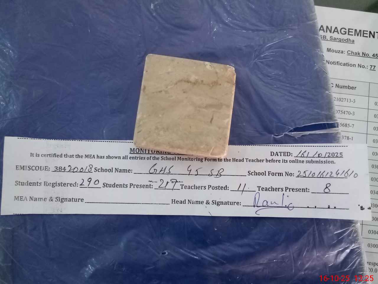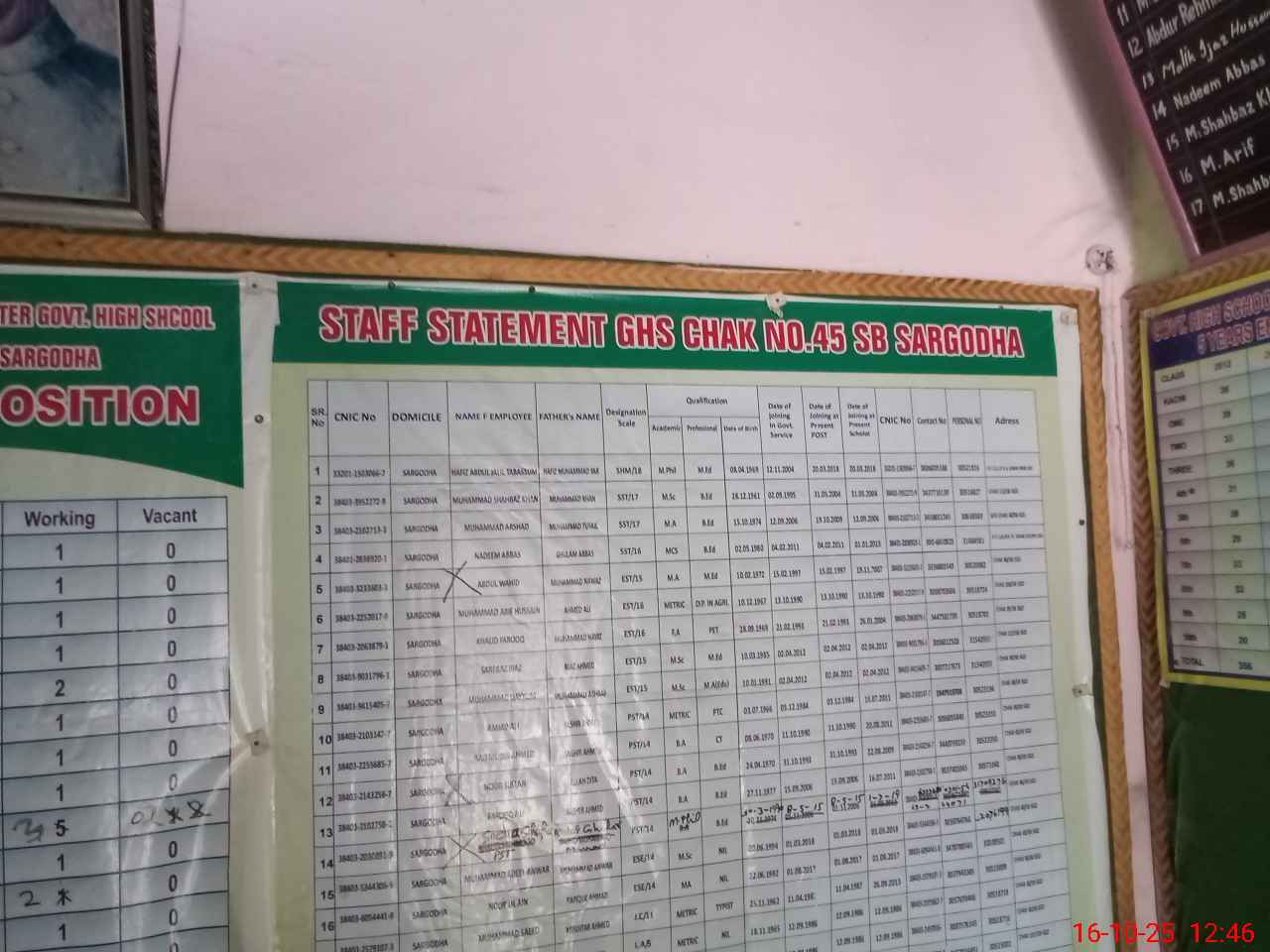 | EMIS Code: 38420018 | Name of School: GHS CHAK NO.45 SB SGD | |||