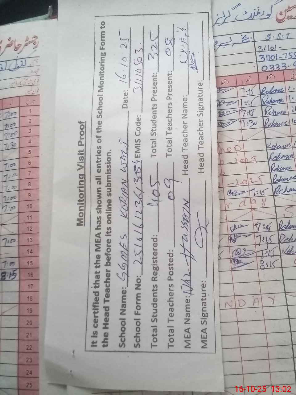| EMIS Code: 31110503 | Name of School: GGMES KORIAN WALI | |||
