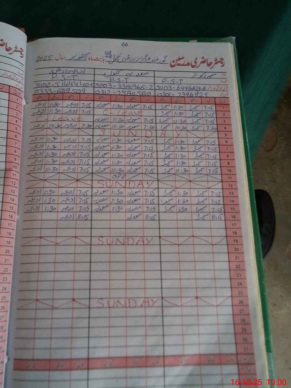 | Leave | Duty | Absent | Maternity | Medical | Ex- Pak |