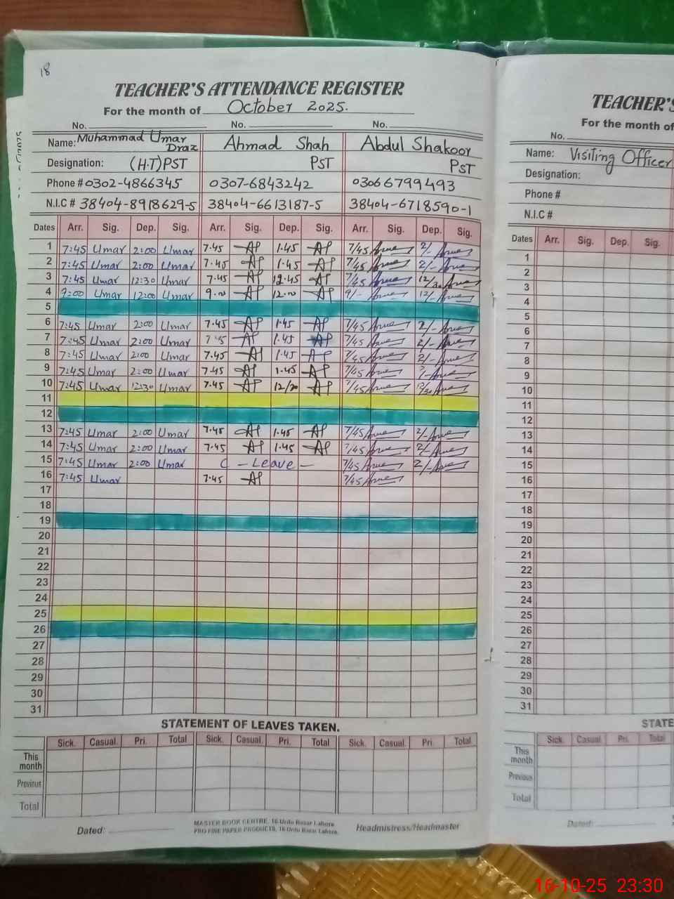 | Name: AR**** MA**** Designation: (School Headmaster's/Headmistress's) PST Phone/Cell Number: 03**** |