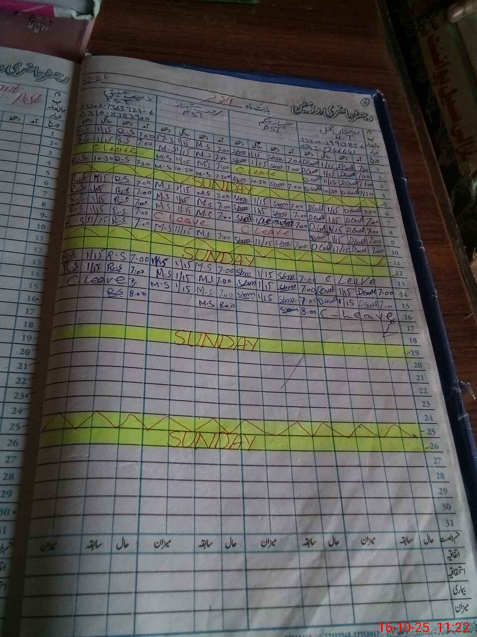 | Leave | Duty | Absent | Maternity | Medical | Ex- Pak |