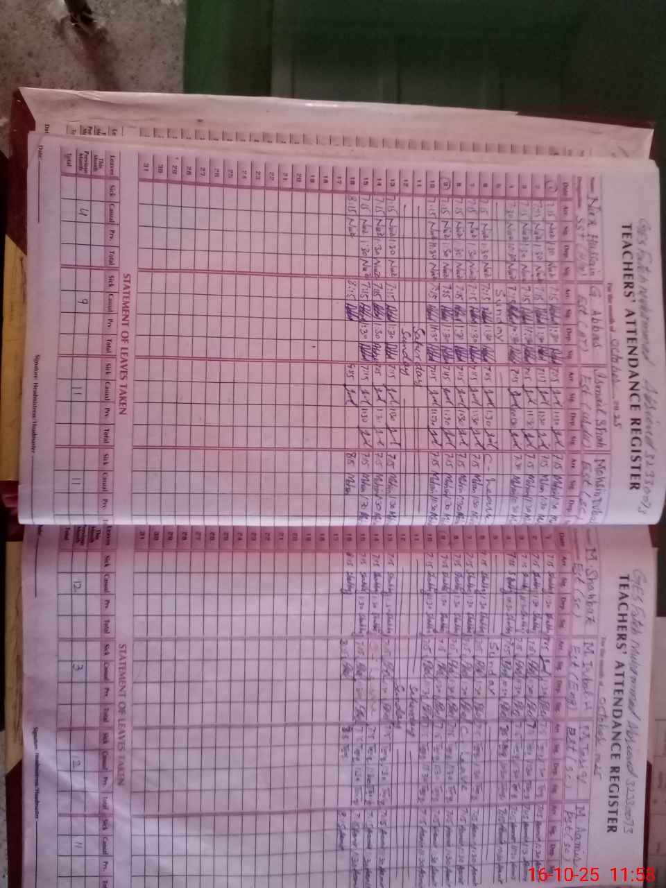 | Leave | Duty | Absent | Maternity | Medical | Ex- Pak |