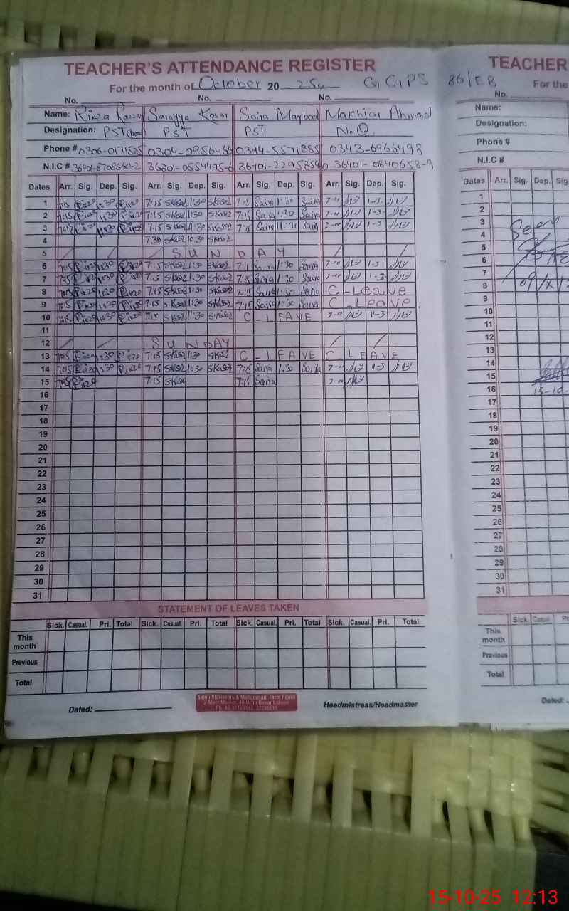 | Name: RI**** RA**** Designation: (School Headmaster's/Headmistress's) PST Phone/Cell Number: 03**** |
