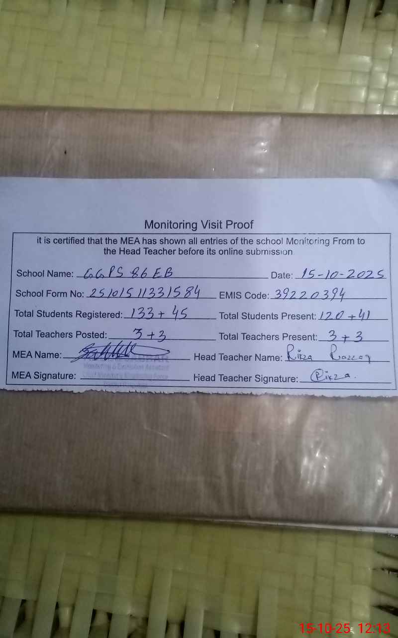 | EMIS Code: 39220394 | Name of School: GGPS 86/EB ARIFWALA | |||