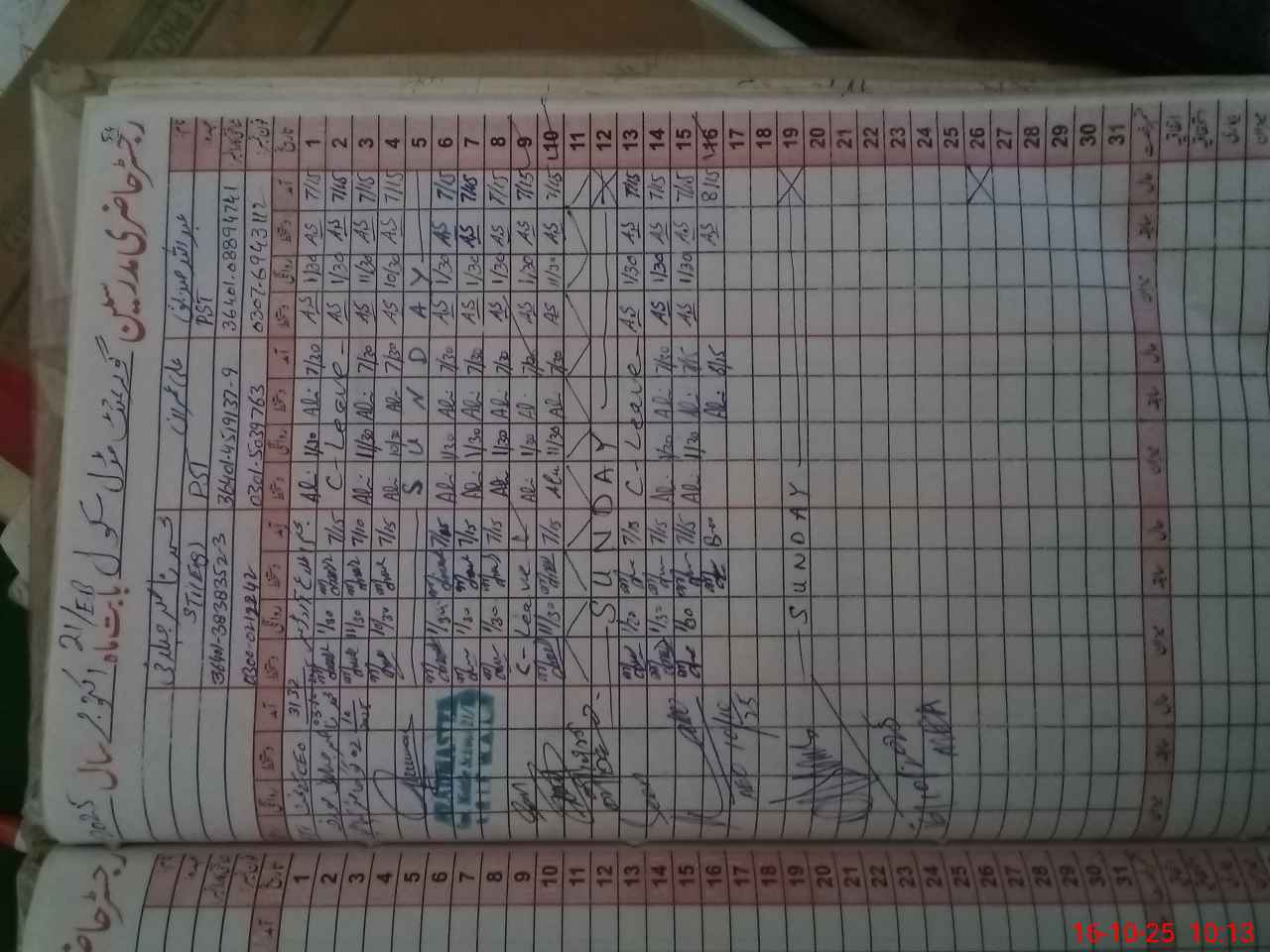| CNIC | Full Name | Designation | R/C | Absence During Last Calender Month |