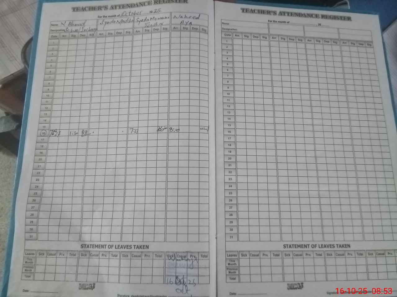 | Name: HA**** M.**** AT**** Designation: (School Headmaster's/Headmistress's) PST/PTC/JV Phone/Cell Number: 03**** |